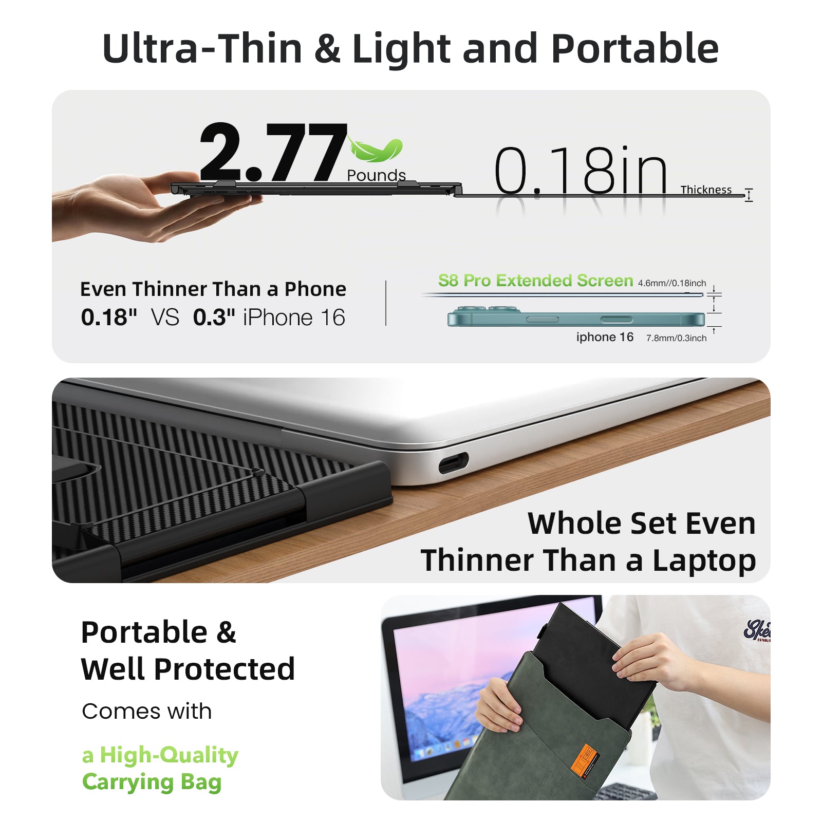 「もう一台モニターが欲しいけど、持ち運びが...」という悩みを、S8PRO MAXが解消します。