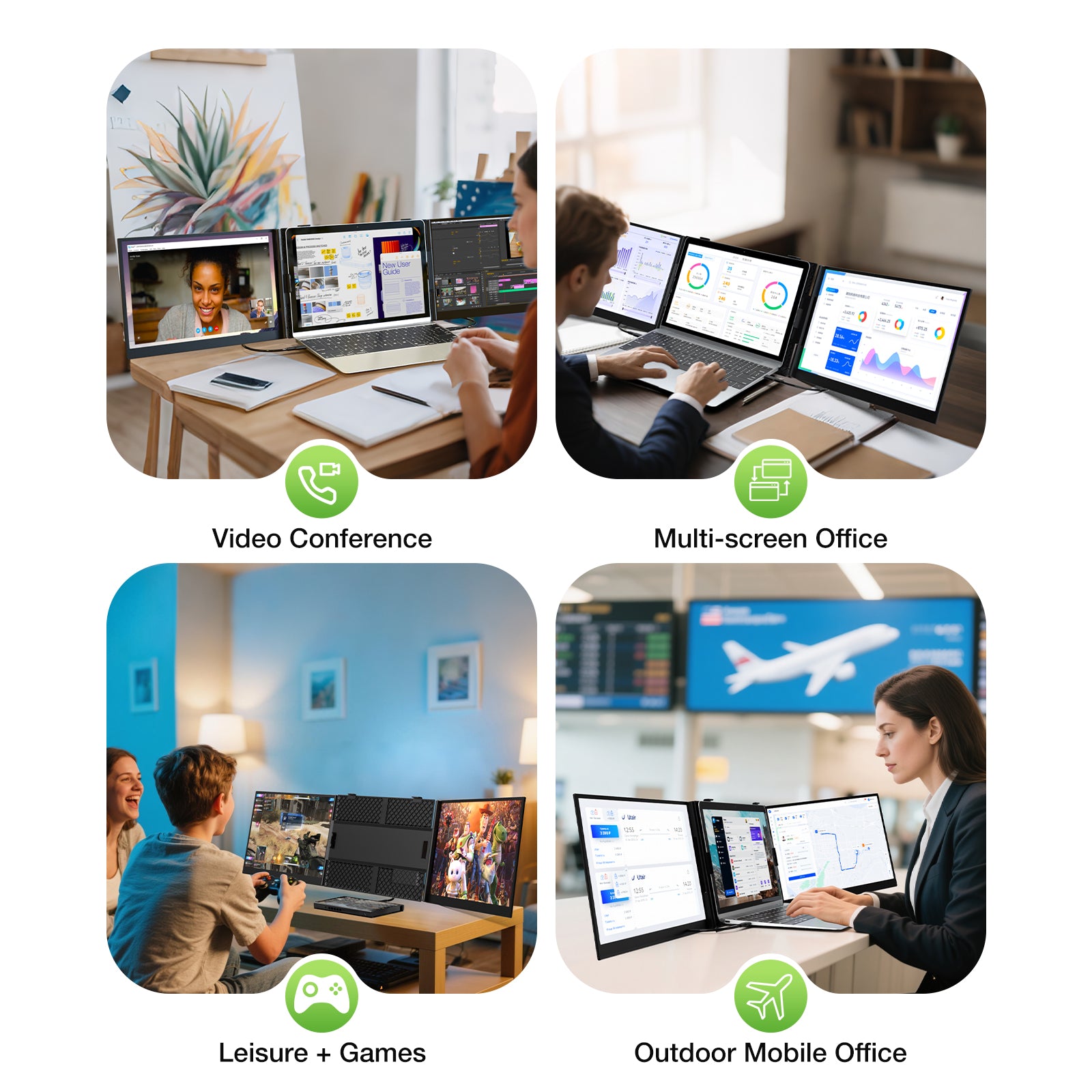 世界初の1.2kg超軽量デュアルスクリーンは、持ち運びを気にせず、どこでも生産性と没入感を2倍にします。